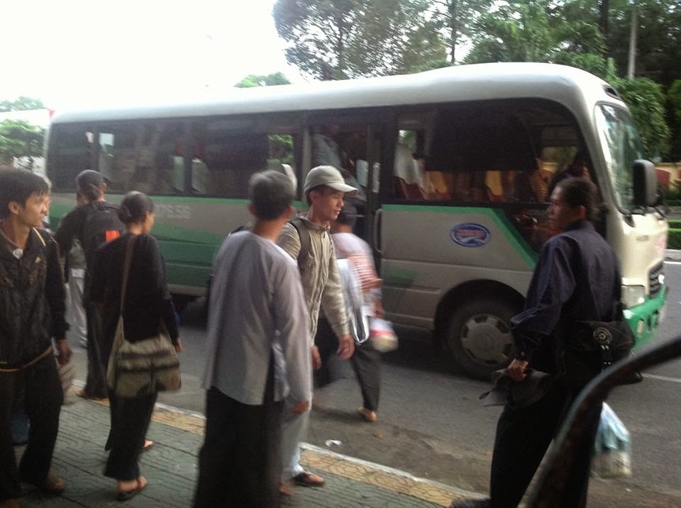 Hôm nay 27-9-2013....Niềm vui đến với tôi thật bất ngờ khi sáng sớm mở cổng ra, tôi như tưởng mình gặp mọi người trong một giấc mơ. Bởi tôi cứ nghĩ mình mới thật dễ dàng khi một mình lên đường đi về phương ấy. Vậy mà tôi lại có thể đón bà con ngay tại căn nhà 106 Lê Hồng Phong ( Nhà tù lớn do tên cai ngục cs đang cai trị - và đám quản giáo côn an - mật vụ- dân phòng cần mẫn canh gác - khủng bố hết ngày này sang tháng khác) .Một đất nước lúc nào cũng ra rả về tự do nhân quyền. Một đất nước mà lãnh đạo của nó cho rằng "tự do gấp vạn lần bọn tư bản giãy chết ", nhưng thực chất không bằng một nhà tù đế quốc thực dân. Họ cứ nghĩ rằng theo dõi- khủng bố- dọa nạt hay làm bất cứ trò mèo hạ tiện nào có thể làm "thui nhột " ý chí- Sợi dây liên hệ và tình cảm giữa những con người cùng chung lý tưởng. Nhưng họ đã nhầm. Vô cùng nhầm khi mà họ càng li gián, nói xấu cho tới dùng đủ mọi biện pháp hòng ngăn cản thì những con người chung ngọn lửa chính nghĩa sẽ càng tìm đến với nhau. Họ sẽ chung lòng , chung sức thổi bùng lên ngọn lửa của sự can đảm. Của tình đoàn kết gắn bó, chia sẻ và taọ nguồn sức mạnh vô biên của CHÍNH NGHĨA VÀ SỰ THẬT .